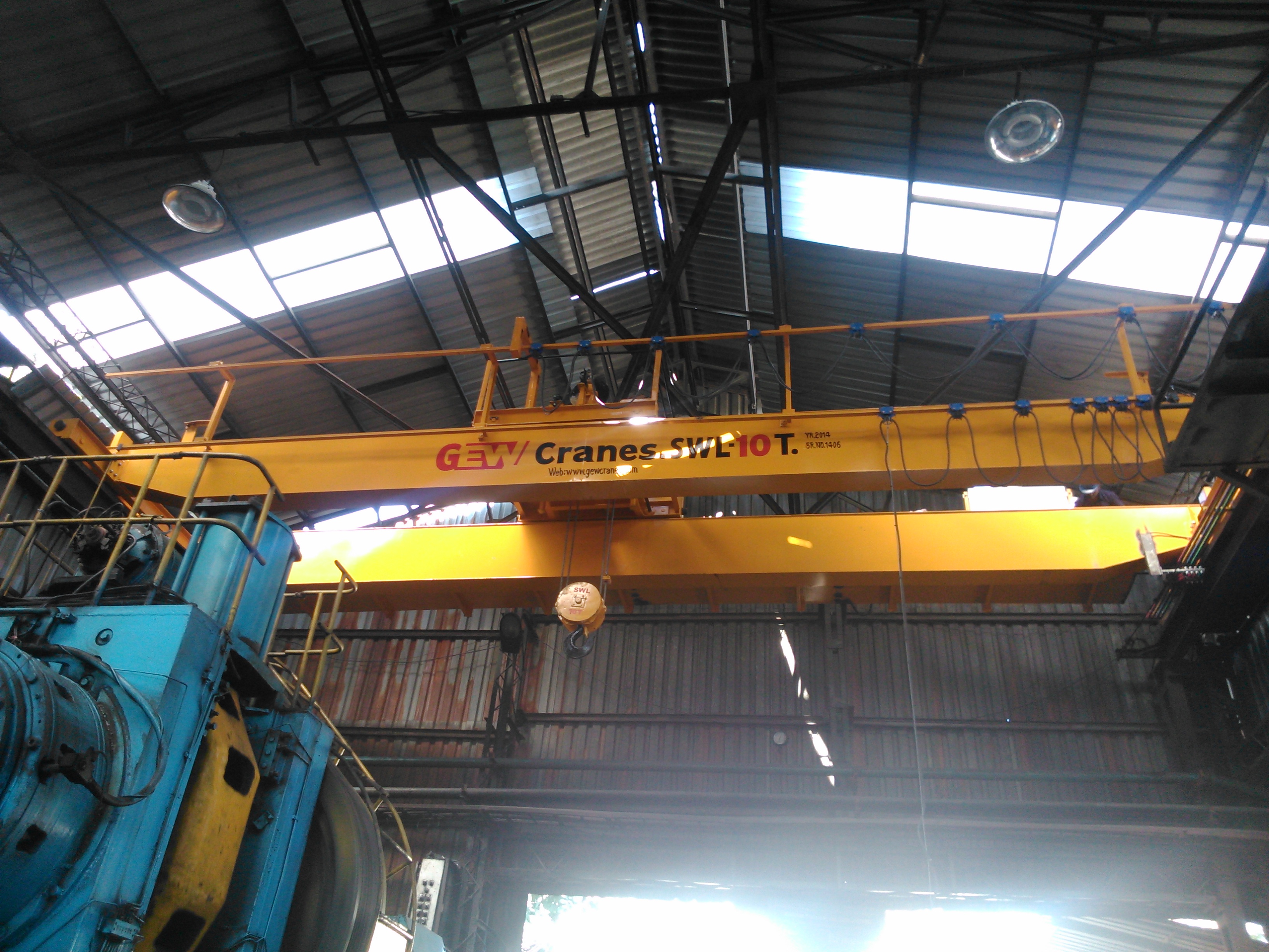 EOT Crane Manufacturer www.overheadcranes.in Product Details: Capacity 5-10 ton, 15-20 ton, 20-25 ton, 0-5 ton, 10-15 ton, >25 ton Power Source Electric Max Height 0-20 feet Color Yellow, Green, Red, Orange We are offering EOT Crane Double Girder to our client. Applications: Power plant Workshop duty Transformer industry Cable industry Process plants Steel plants Coal fields Cement plants Engineering industry Features: Excellent performance Easy to use Longer service life EOT Crane Manufacturer www.overheadcranes.in